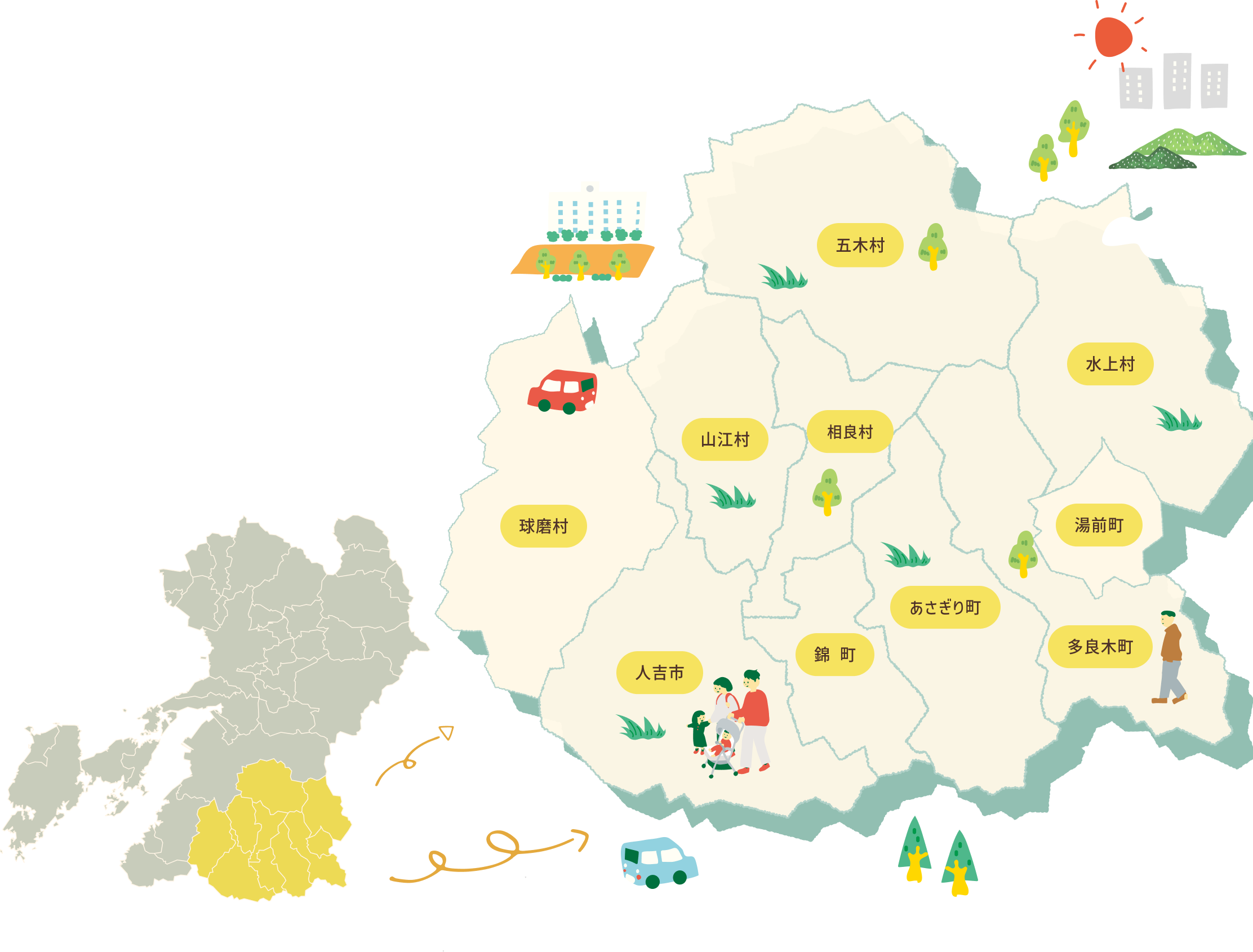人吉球磨は、熊本県南部に広がる10のまちと村からなる、