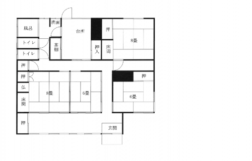 - 8畳・8畳・6畳・6畳の和室を中心とした構成