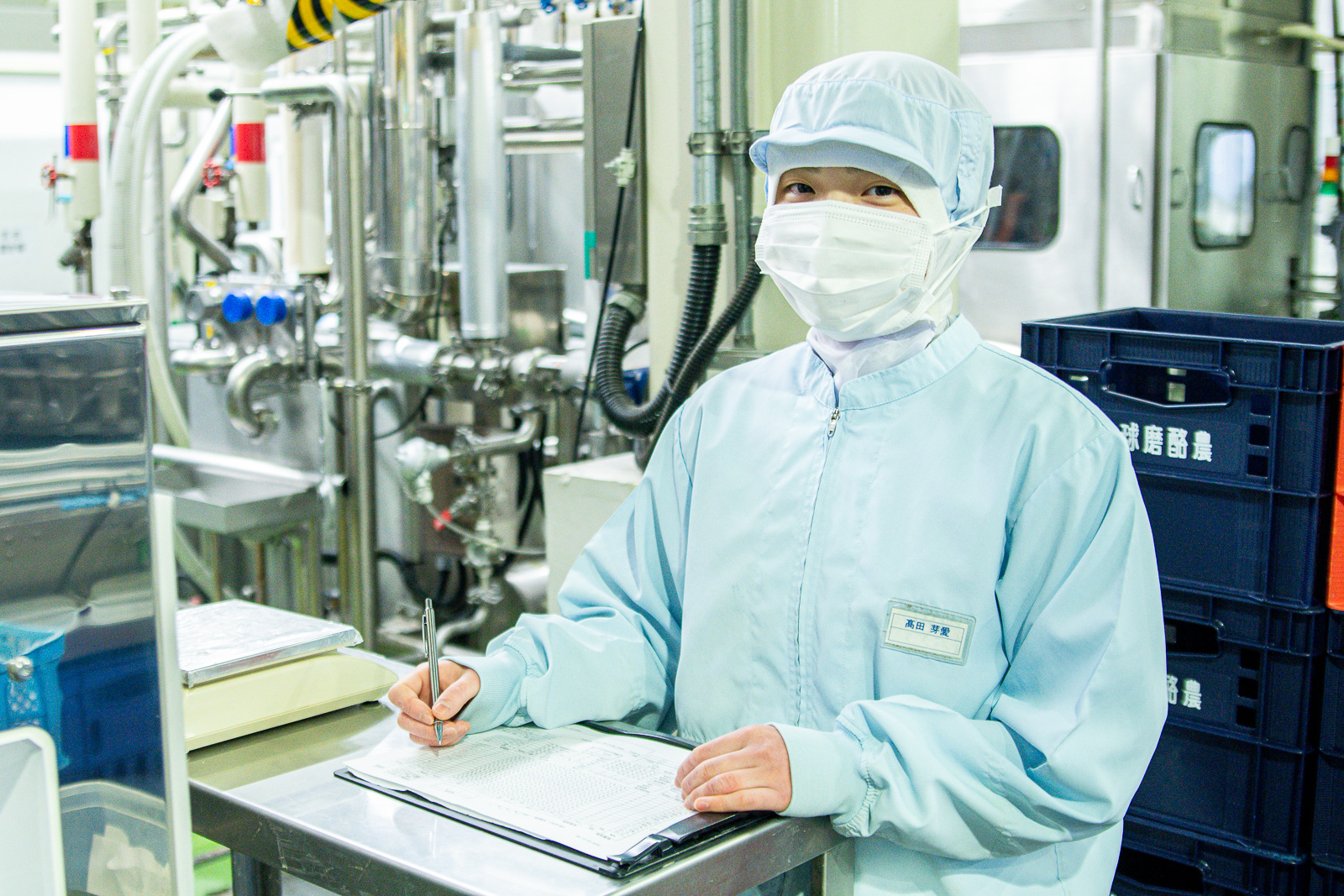 髙田さん「入社してすぐの酪農研修で、酪農家さんの日々のご苦労や、牛たちが体を削って乳を出し、その一滴一滴が私たちの飲む牛乳になることを知りました。生乳を託された者の責任は重い。できるだけ生乳のロスがないよう、細心の注意を払っています」。