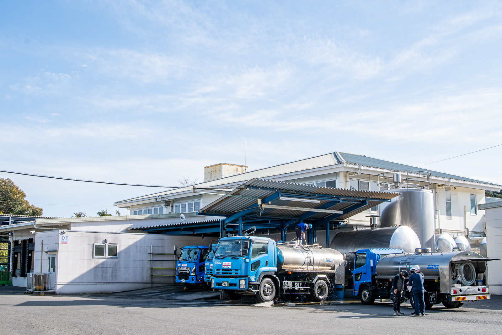 ローリー車が毎日新鮮な生乳を集荷してくる。