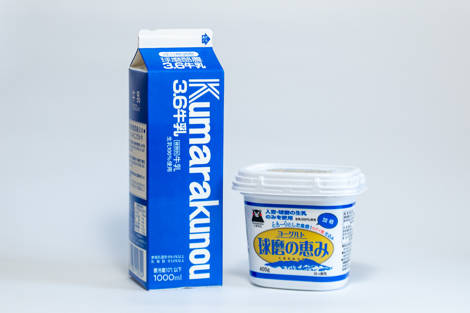 『Kumarakunou3.6牛乳』と『球磨の恵みヨーグルト』。