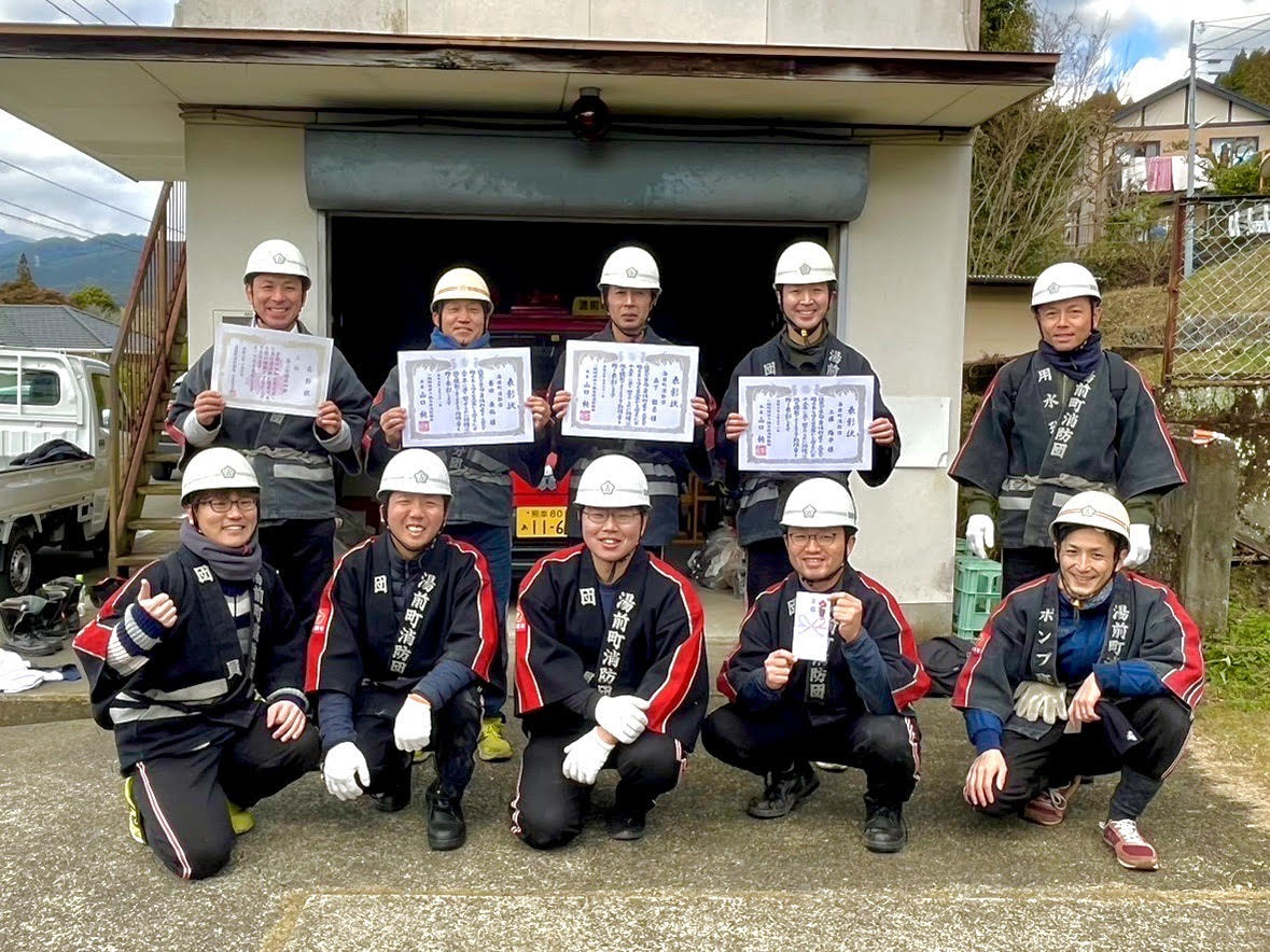 地域の消防団に参加している佐々木さん(前列の左から2番目)